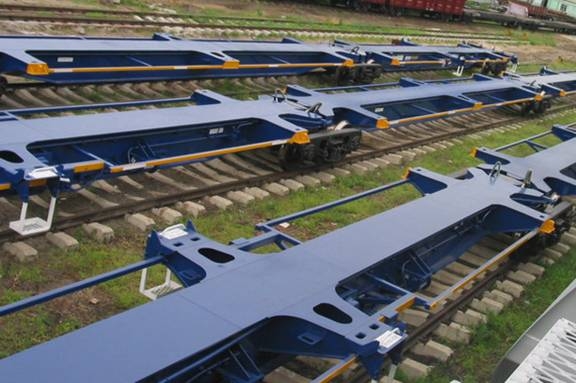 概况 该车在澳大利亚标准轨距铁路上运行,用于装运指定的不同规格和尺寸的集装箱,每辆车均可以配置:两个20ft的ISO,RC集装箱 神马影视,或两个24ft的RE集装箱,或一个20ft和一个24ft的RE集装箱,或一个40ft,45ft,48ft集装箱, 应用情况 5单元集装箱关节车是齐车公司根据合同及技术规范的要求为澳大利亚PN公司设计制造的铁路集装箱货车,目前我公司生产5单元集装箱关节车91组(455 辆)在澳州境内运行,时速115km/h,年运行里程达到35万公里,该车投入运用,运行品质良好,给用户带来巨大的经济效益和社会效益, 5单元集装箱关节车在国内属于首次研制,添补了多单元关节式货车的空白,它的研制成功标志着我国在多单元关节车设计,制造方面有零的突破,特别是关节式平 车的设计理念和应用形式都与通用车有很大的差别,对我国国内类似产品的升级换代提供了新思路并具有重要的指导意义。