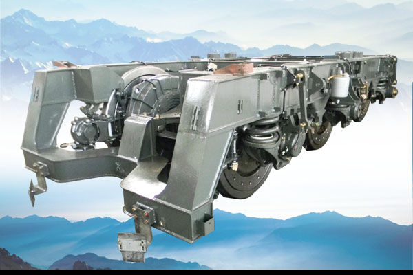 6)一系悬挂系统采用单拉杆轴箱定位+螺旋弹簧方式,一,三轴安装垂向减振器,二系悬挂系统采用高圆螺旋弹簧+橡胶垫结构,辅以各向减振器 神马在线。