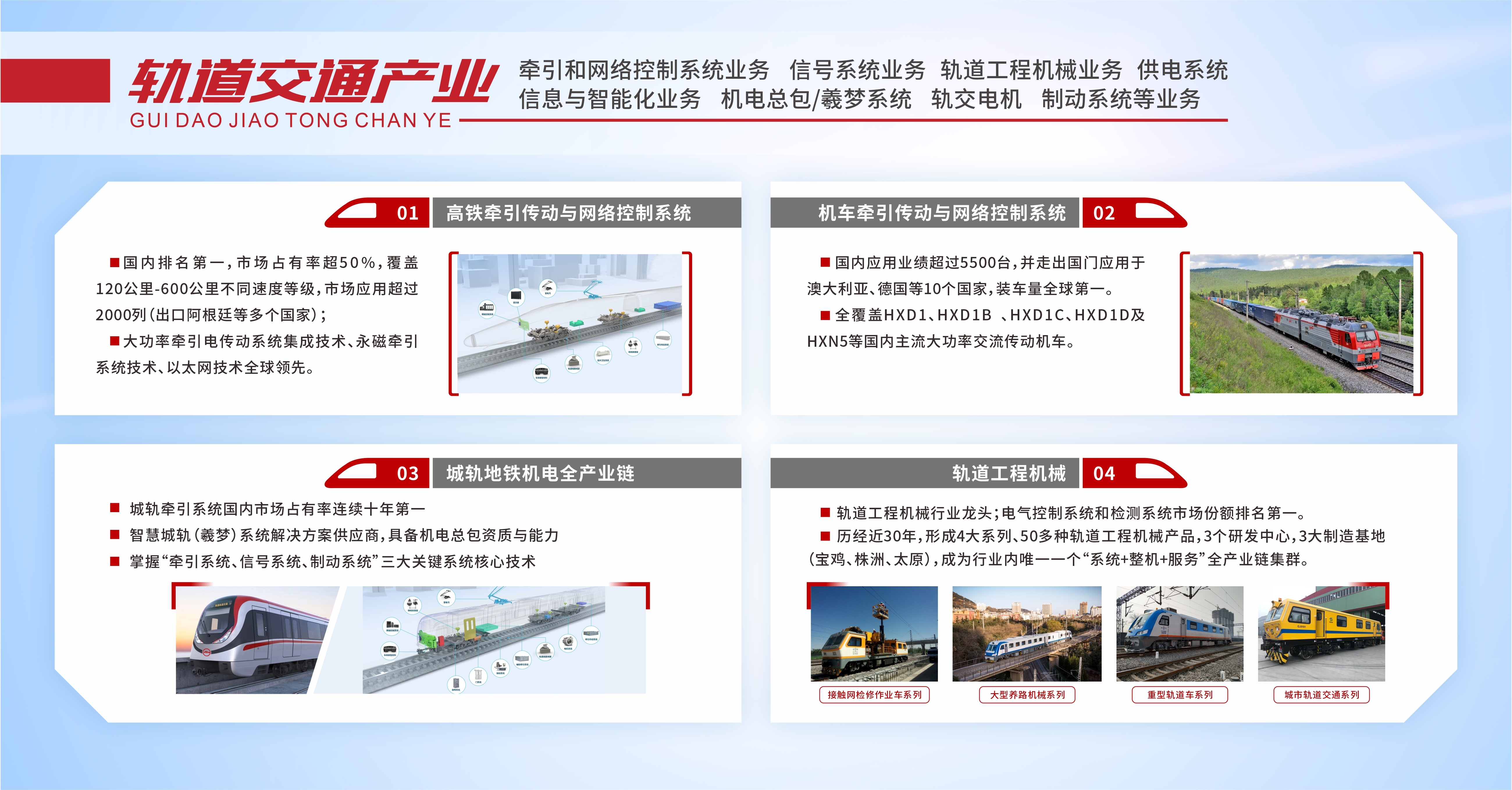 公司轨道交通产业包含牵引和网络控制系统 神马影视在线,信号系统,轨道神马影视免费观看,供电系统信息与智能化,机电总包/羲梦系统,轨交电机,制动系统等业务。 | |