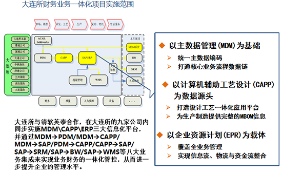大连所公司财务业务一体化项目规划在大连所下属的九家公司内同步实施主数据管理(MDM),计算机辅助工艺设计(CAPP)和企业资源计划(ERP)系统,实现主数据全业务贯通,设计制造一体化集成和业务财务的一体化集成 神马影院。